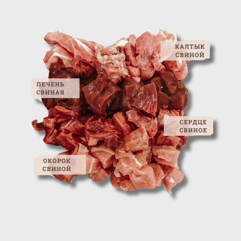 Состав:Окорок свиной, калтык свиной, сердце свиное, печень свиная
