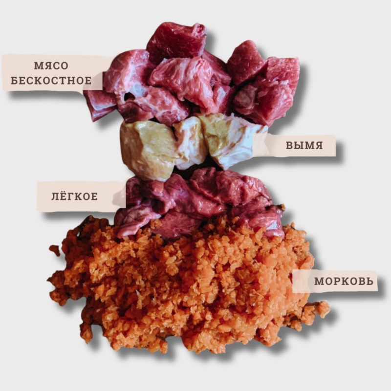 Состав:Морковь, мясо бескостное, вымя говяжье, лёгкое говяжье